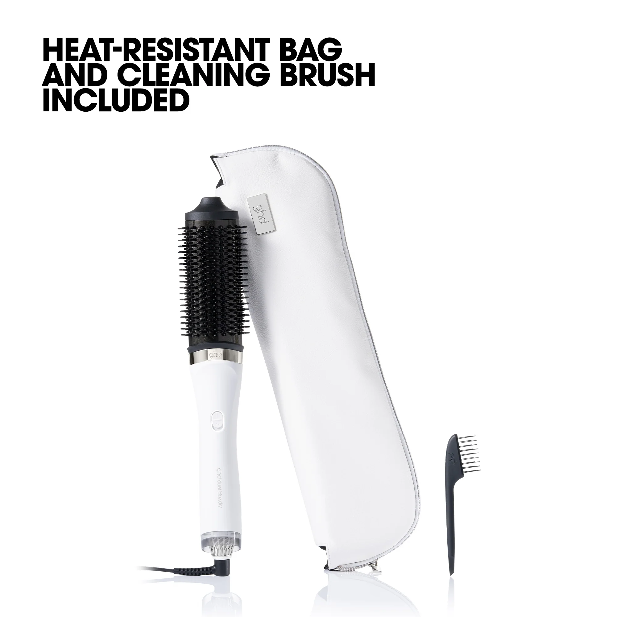 A heat resistant bag and cleaning brush is included, to allow you to safety store your product immediately after use, and get the most out of your new blow dry tool with a handy cleaning brush.Ā