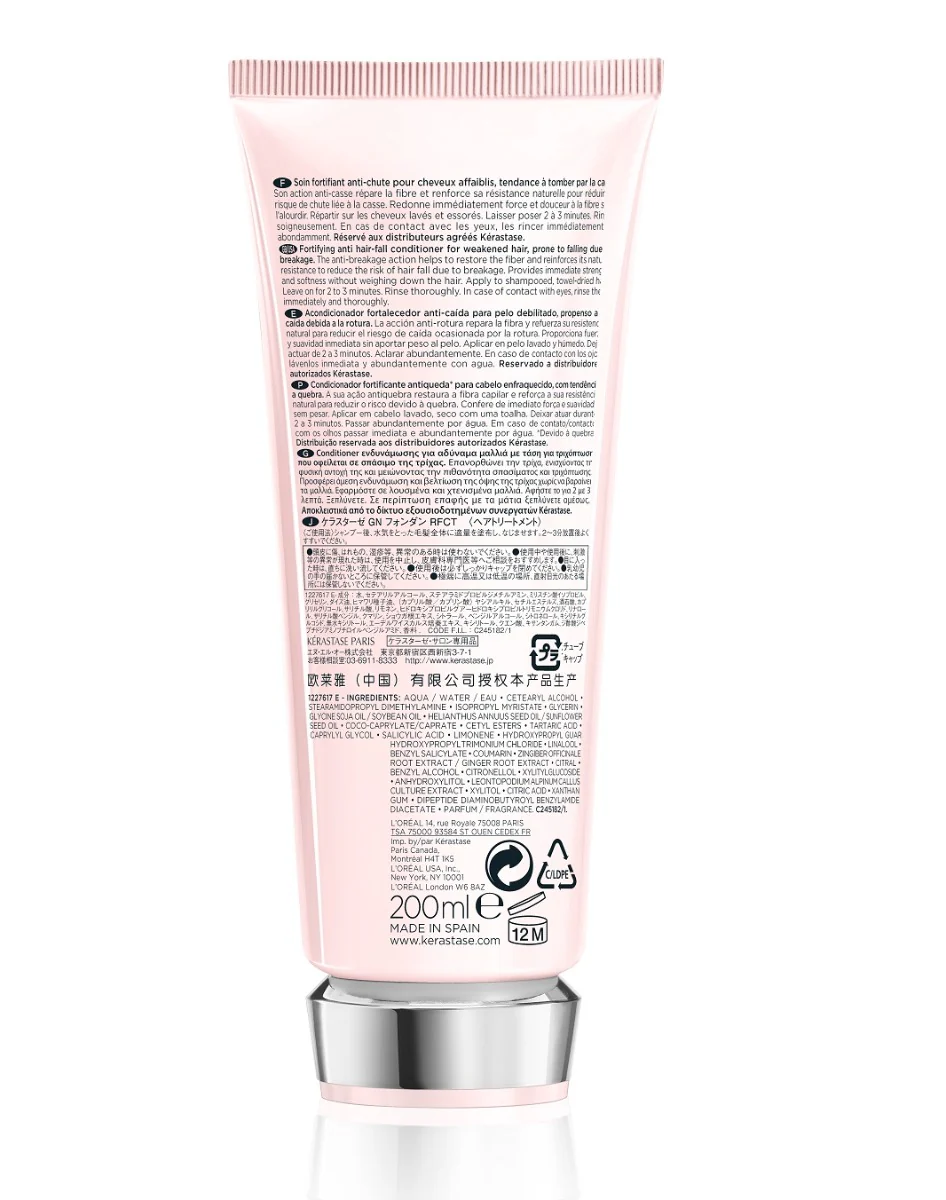 Fortifying anti hair-fall conditioner for weakened hair, prone to falling, up to 97.7% less hair fall due to breakage. Enriched with Edelweiss Native Cells, Ginger Root & Aquaxyl the anti-breakage action helps reinforce the fibre's natural resistance to reduce the risk of hair fall dut to breakage. Provides immediate feeling of strength and softness without weighing down the hair.