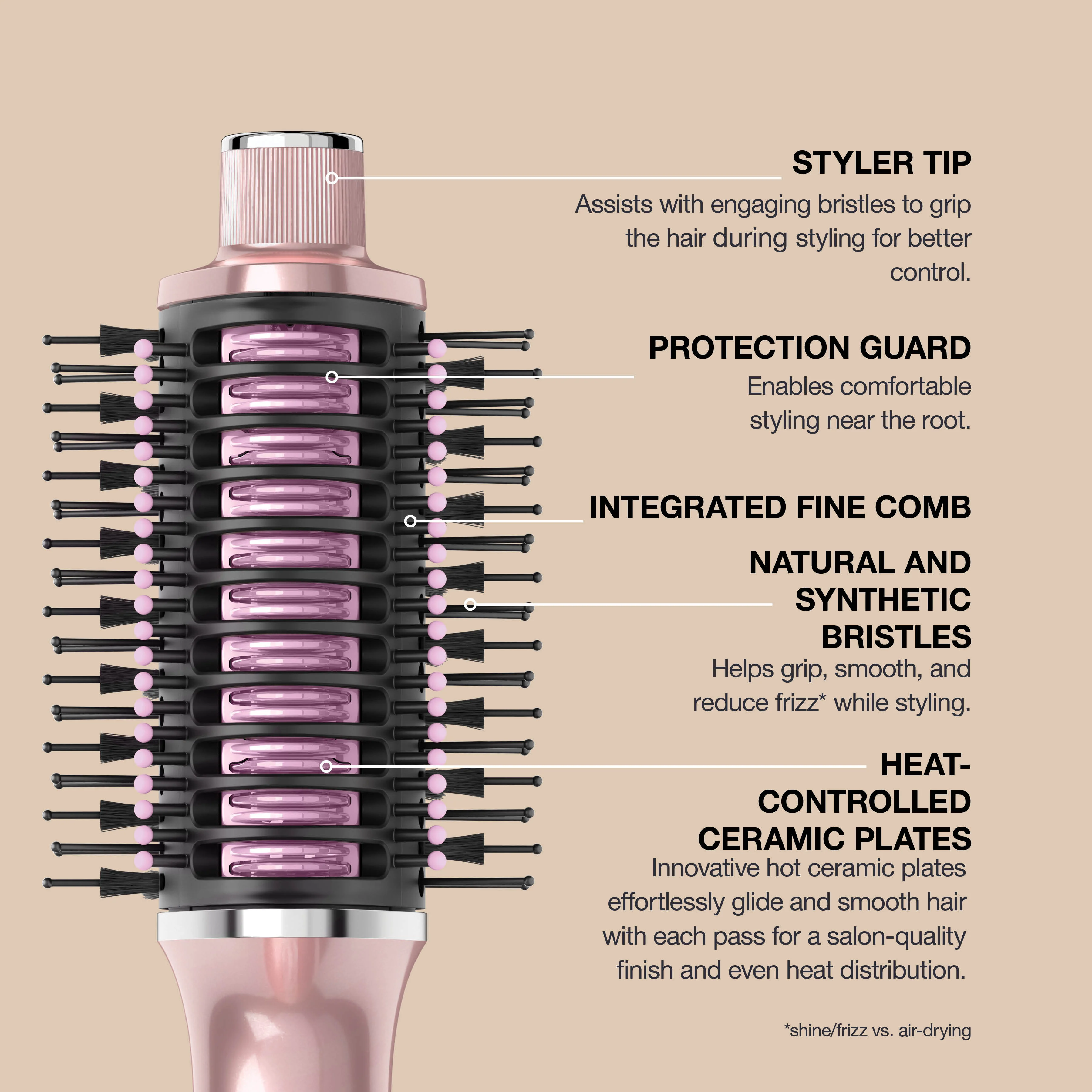 *Shine/frizz comparison vs. air-drying